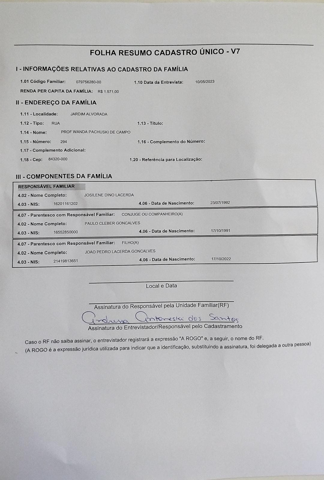 Inscrito no CADÚNICO: